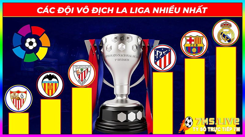 La Liga là một trong 5 giải đấu hàng đầu Châu Âu, đây là nơi quy tụ của những đội bóng giàu truyền thống và rất nổi tiếng. Trong lịch sử hử 100 năm của mình, La Liga đã đón nhận rất nhiều đội bóng lên ngôi vô địch và thành danh trên bản đồ bóng đá thế giới. Vậy bạn có biết đâu là những tập thể lên ngôi nhiều nhất tại giải đấu này không? nếu chưa biết thì hãy để 7M chúng tôi gửi đến bạn thông tin về top các đội bóng vô địch La Liga nhiều nhất trong bài viết này. Cùng theo dõi nhé!