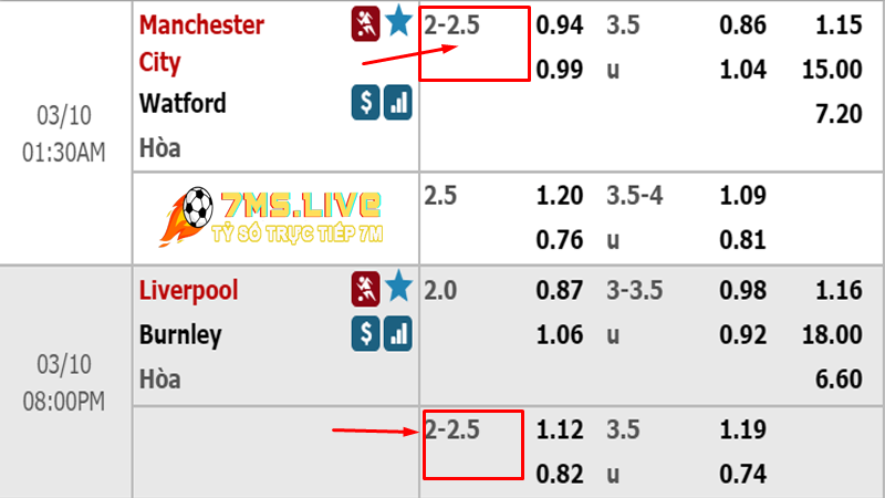 Ví dụ kèo tài xỉu 2 1/4