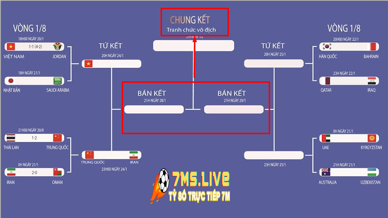 Tại đây, chỉ có 2 đội giành chiến thắng cuối cùng mới có cơ hội đi tiếp vào vòng chung kết, nơi danh hiệu quán quân sẽ thuộc về một trong hai đội này. Trận đấu tại vòng chung kết không chỉ đơn thuần là cuộc thi thể thao, mà còn là cuộc chiến tinh thần và lòng kiêu hãnh của mỗi cầu thủ, của mỗi quốc gia.